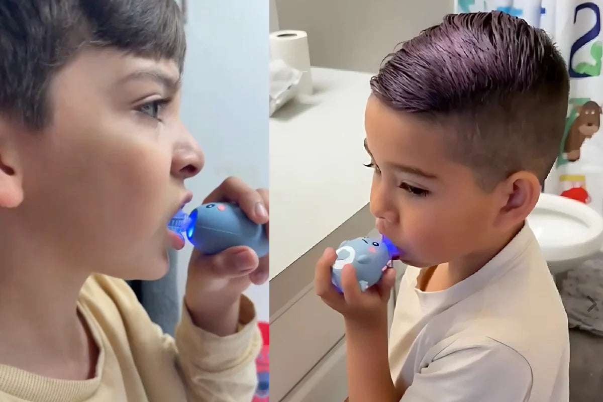 Este cepillo no es uno más: tiene un diseño suave, envolvente, sin filamentos duros, que permite a los niños simplemente “morder” y cepillarse 60 segundos a cada lado. Su tecnología 360° alcanza incluso los molares olvidados y cuida las encías con suavidad.