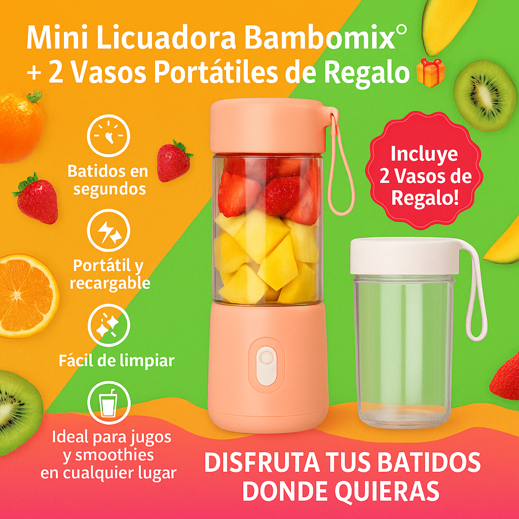 Mini Licuadora Bambomix°🍑 + Vaso 2 vasos portatiles de Regalo 🎁